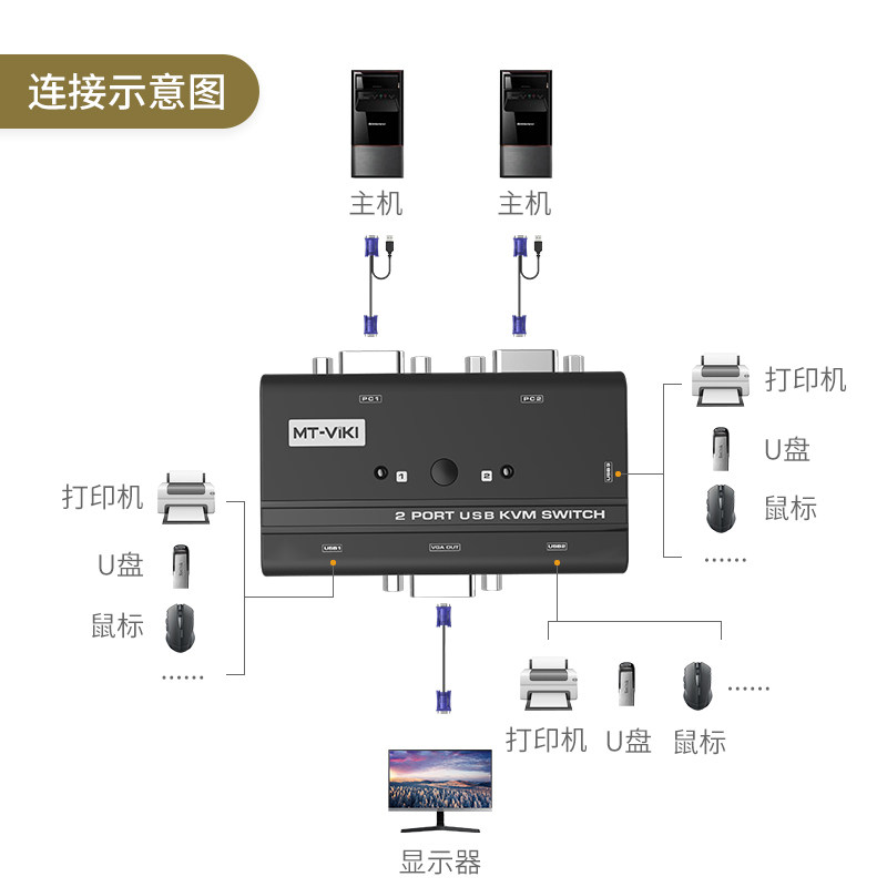 Maxtor Moment KVM Switch 2 Port USB HD VGA Computer Keyboard Mouse Monitor Sharer 2 in 1 out