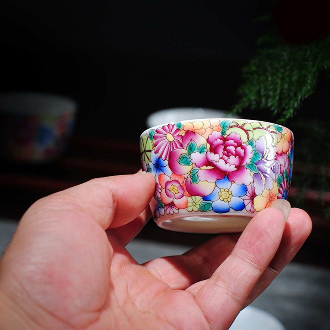 Jingdezhen tea set Master Cup ceramic kung fu tea cup single Cup hand-painted enamel small tea cup personal tea cup