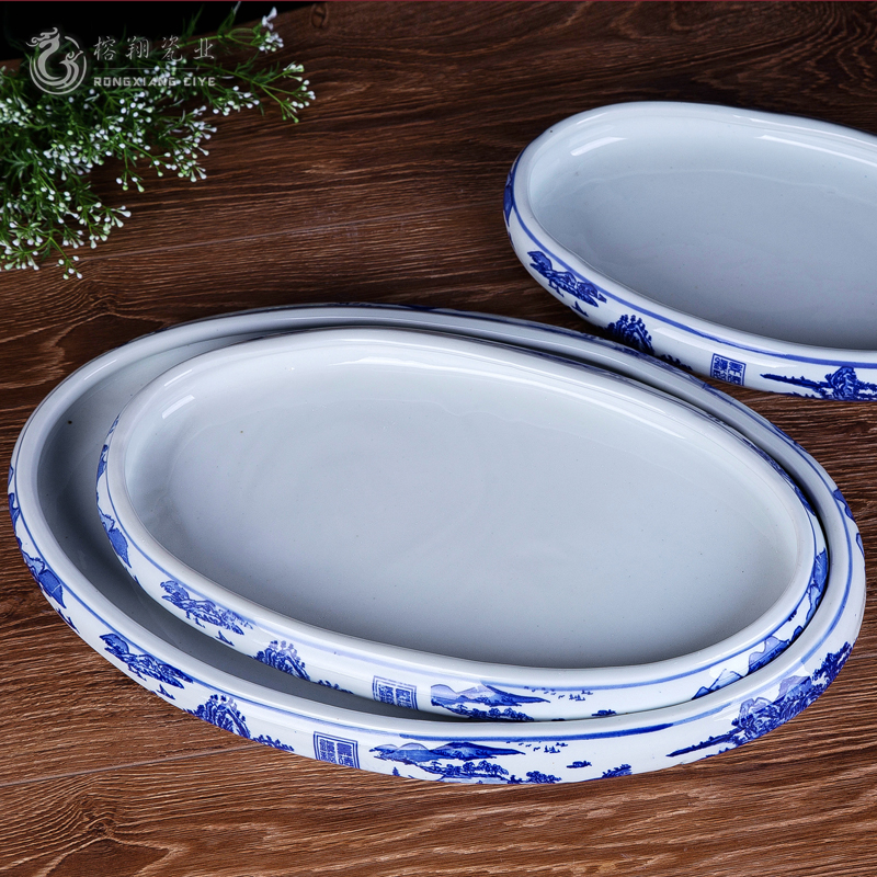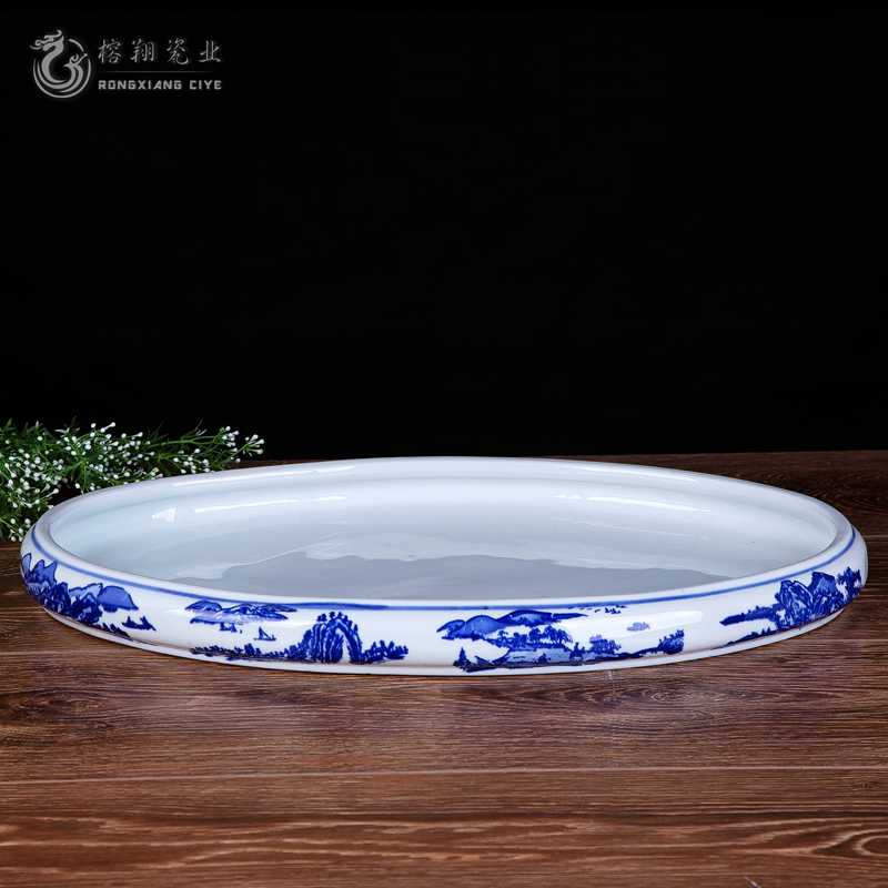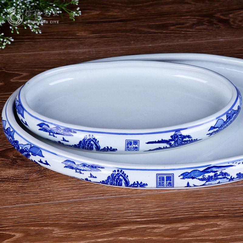 Special offer Jingdezhen ceramic blue and white landscape oval rockery pot narcissus plate stone bonsai chassis potted tray