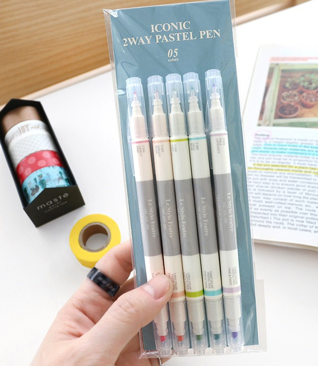 iconic Korean stationery Mac pen thin head water-based pen Small fresh color double head fluorescent thick head hand account marker pen
