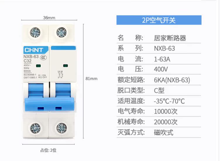 Circuit breaker for household C air switch diode DZ47-2P 25A32A40A