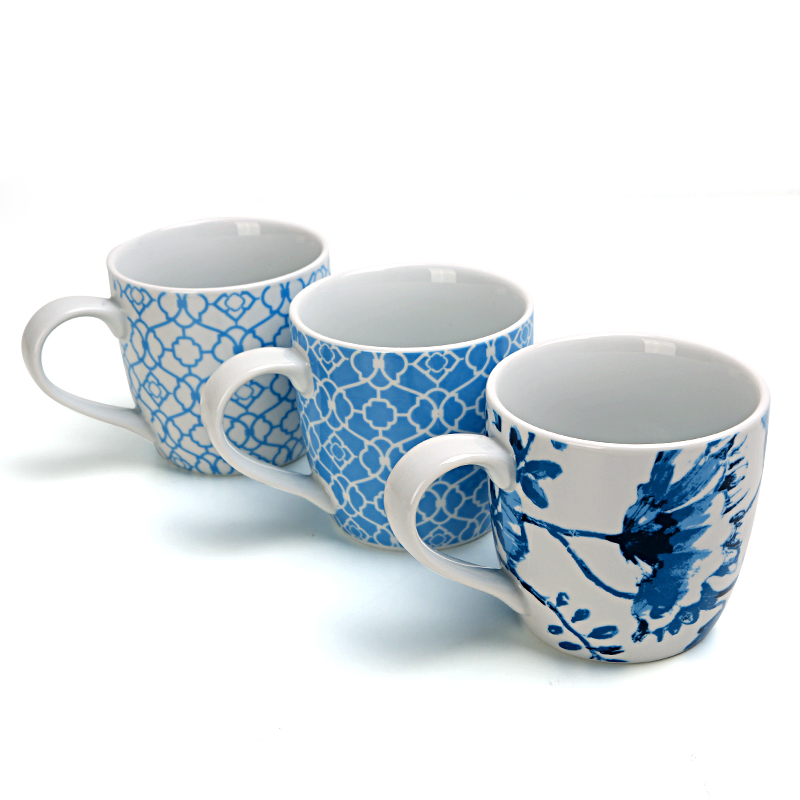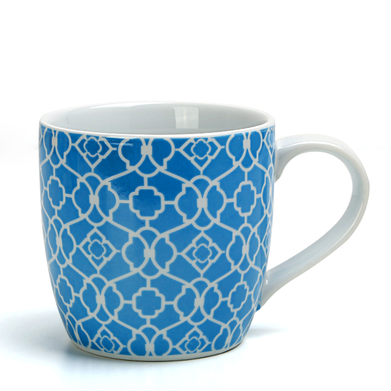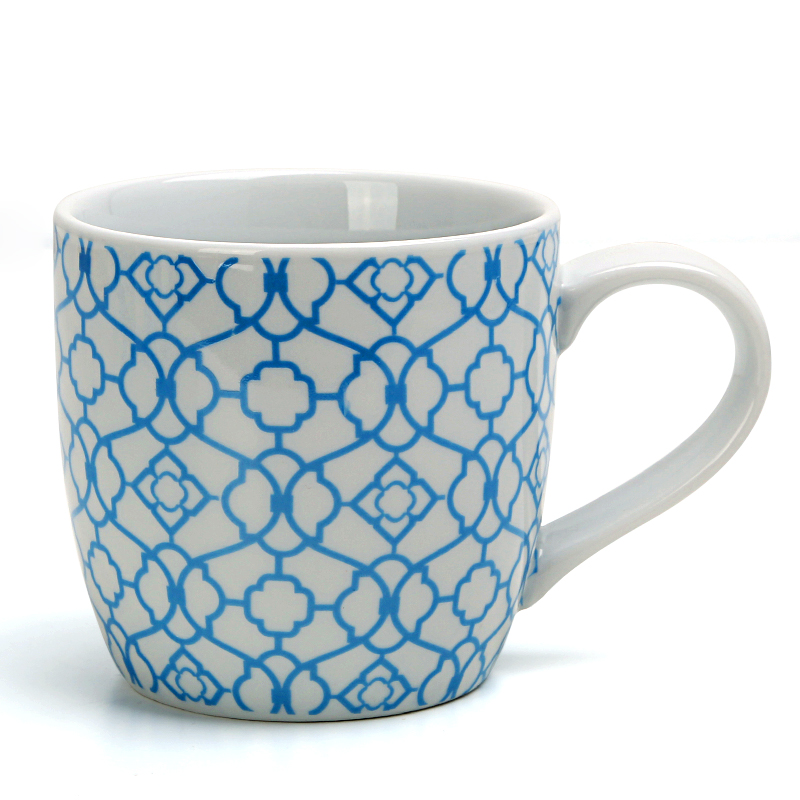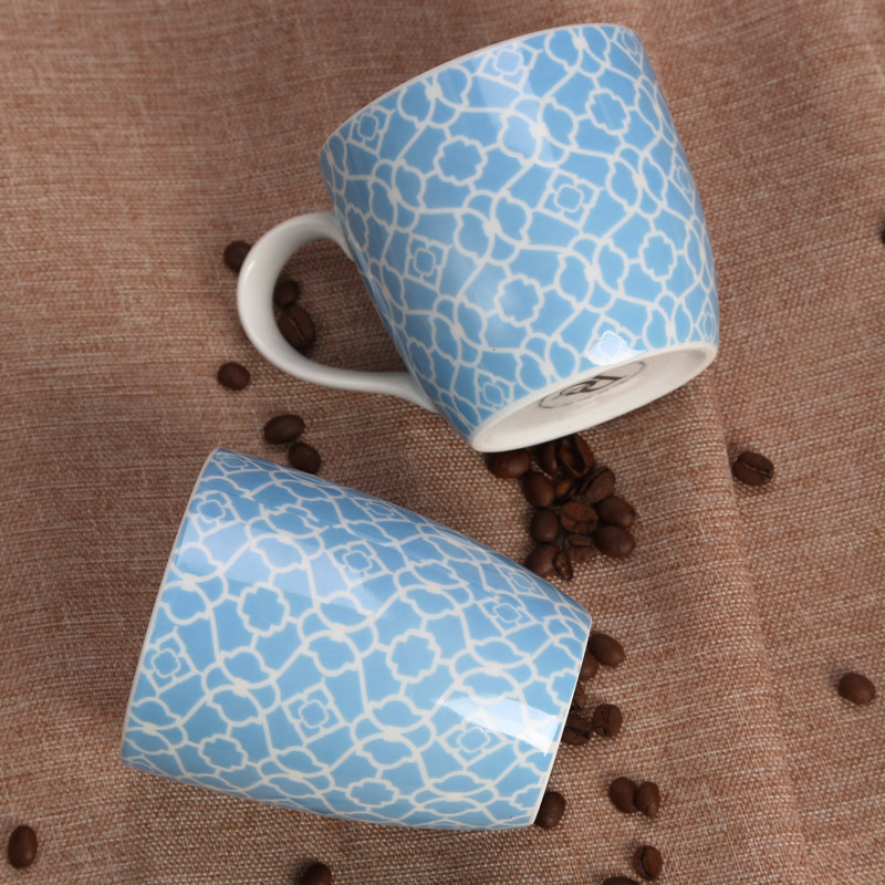 300ml European-style ceramic tea cup blue and white pattern mug office coffee cup