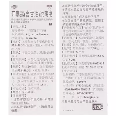 Hengjian Kaiseru contains 20ml * 20 boxes of glycerin for children, adults, constipation and laxative
