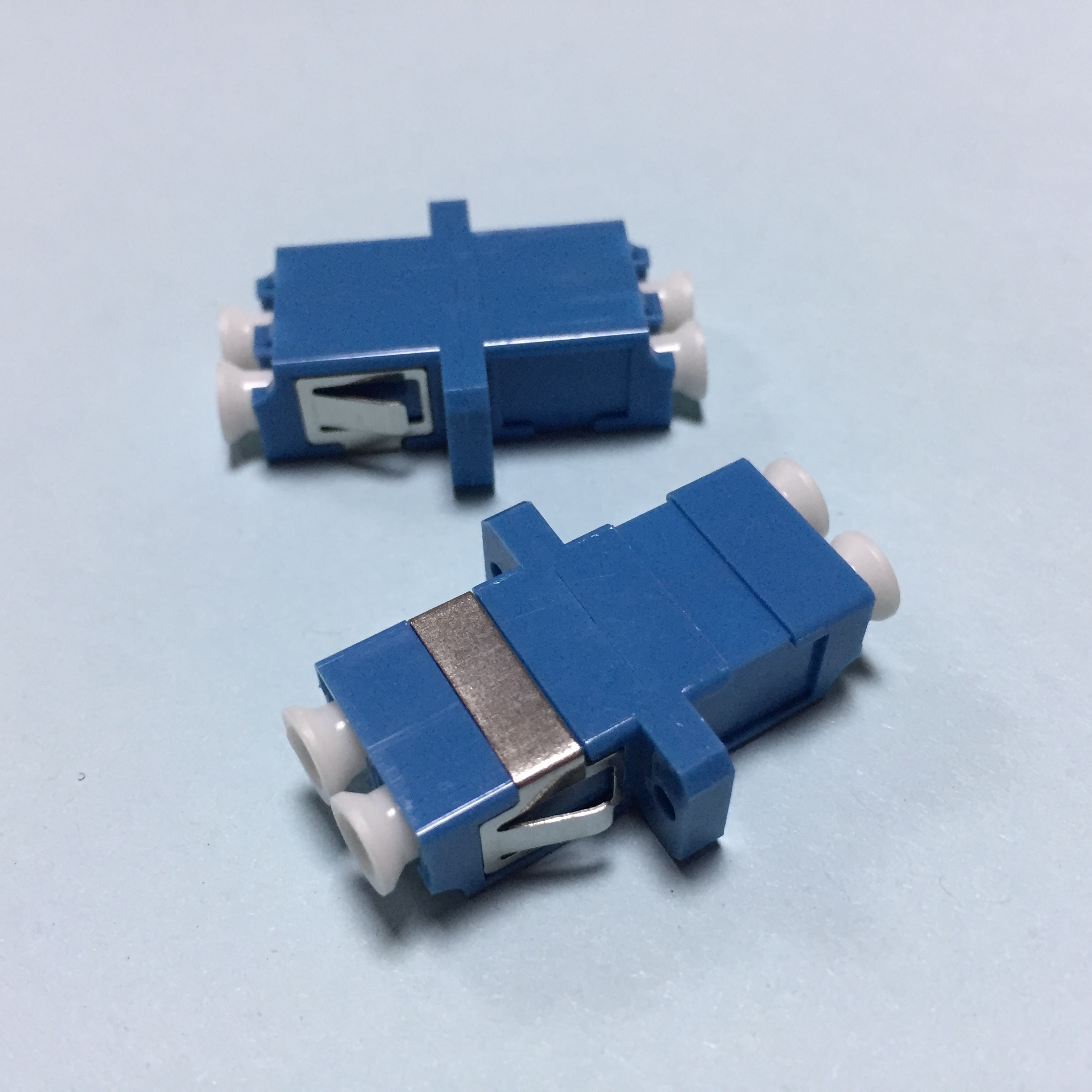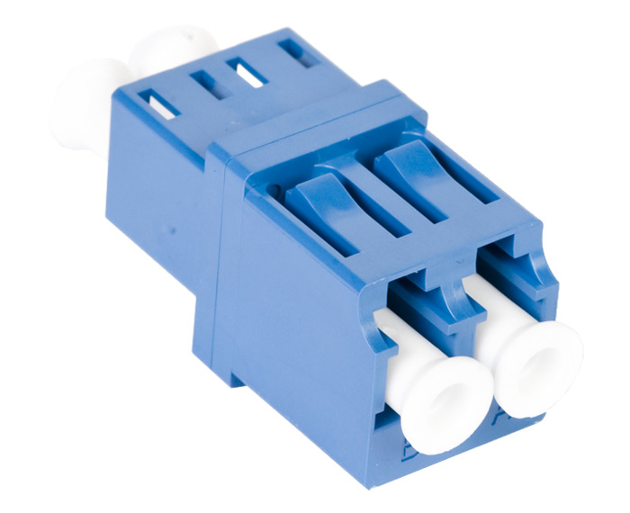 Fiber coupler connector flange adapter telecommunications grade LC duplex low symmetry single mode low loss