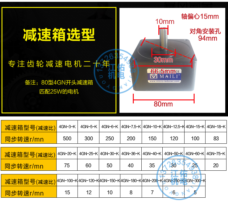MAILI gearbox 4GN-150-K Myrie 4GN-150-K 25W automatic table motor