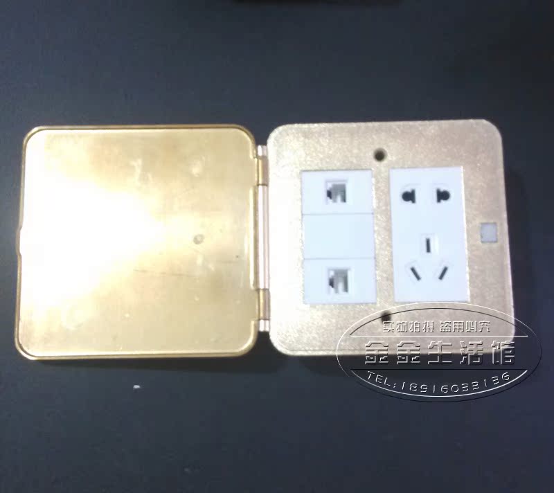 Copper floor socket open flip-type 5-hole phone computer network route to plug in dark case
