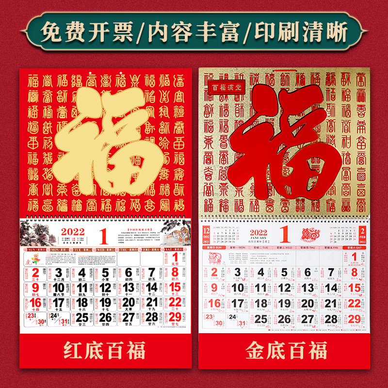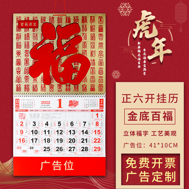 Multi-Province Hanging Calendar Fu Characters Hang Calendar 2022 Hang Calendar Tiger Year Hang Calendar Fu Characters Hanging of the Hundred Foto Hang Calendar