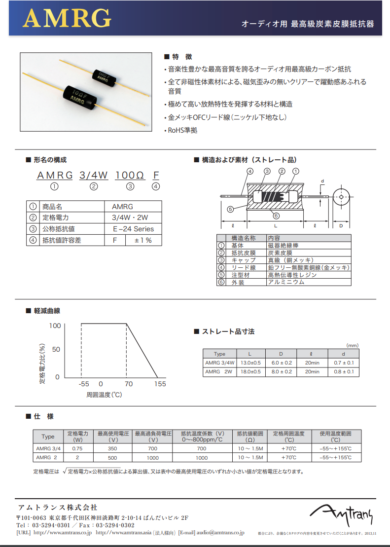 Japan original AMRG 2W National Treasure Carbon Film Gold Pin Resistor Non-magnetic advanced audio