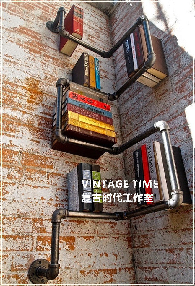 LOFT heavy industry black iron to do old water pipe corner bookshelf industrial wind corner water pipe bookshelf