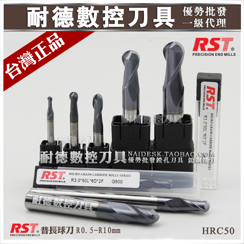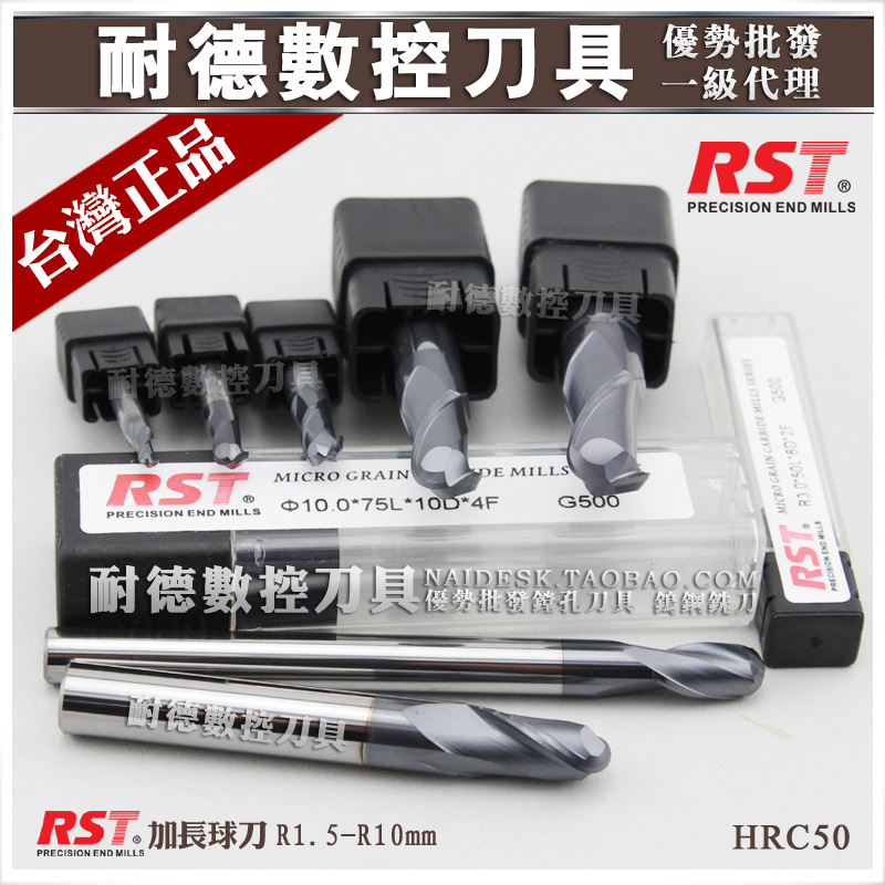 Taiwan RST cemented carbide coated ball head tungsten steel upright milling cutter CNC cutter lengthened handle ball knife R2-R6mm