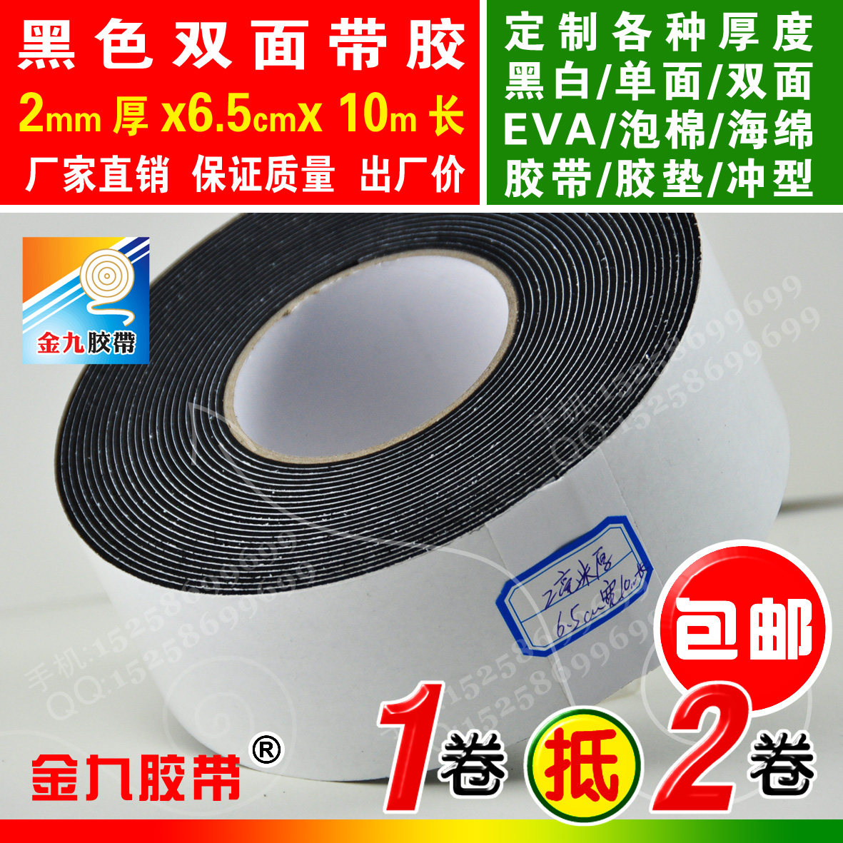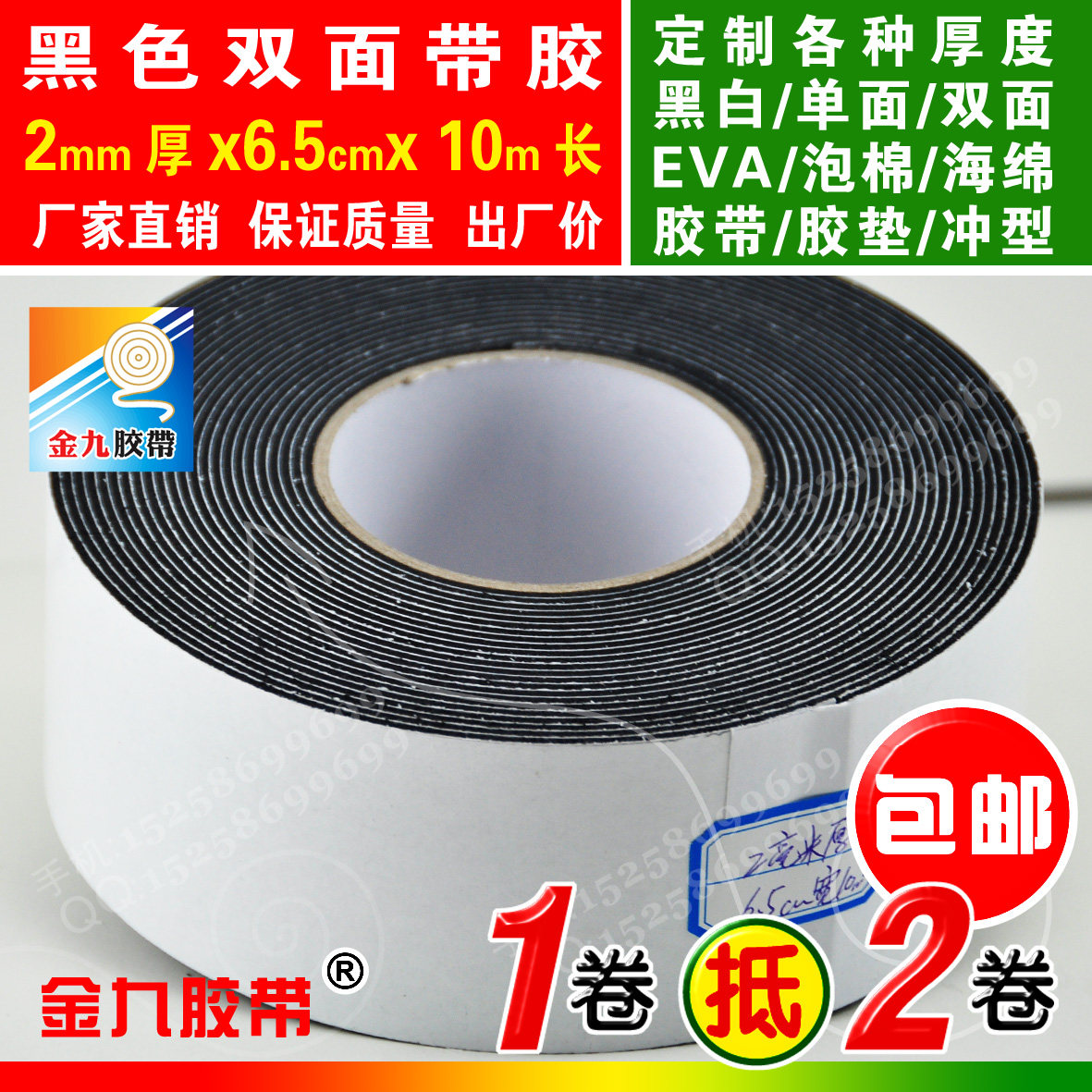 Black double-sided EVA foam sponge adhesive tape foam shockproof adhesive tape cushion Anti-crash strips 2mm thick 6 5cm Width 10m Long
