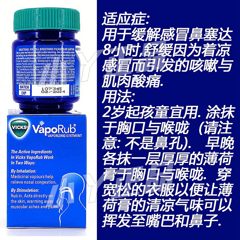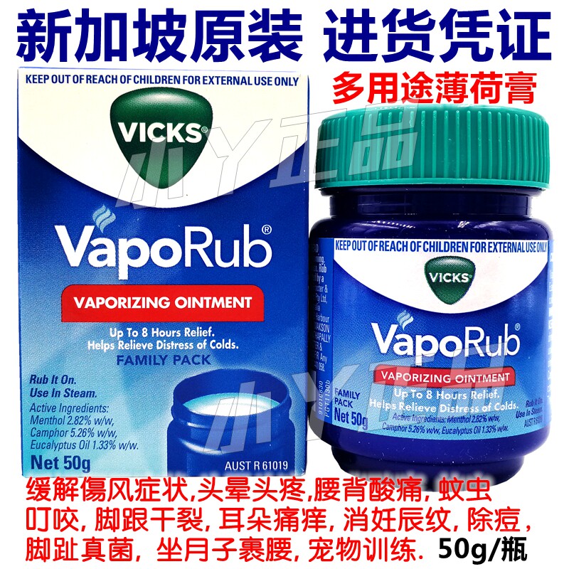 Singapore imported Australian Vicks VapoRub mint cream for adults and children nasal plug nose paste 50g