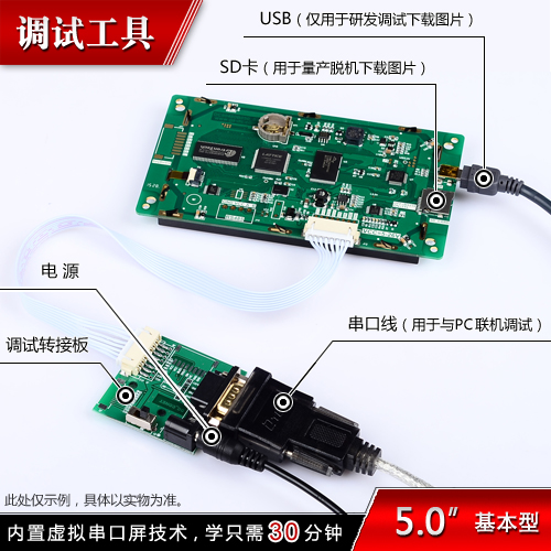 5 0 inch serial port screen with touch 800 * 480 TFT with configuration USB with RTC 5 ~ 26V Power supply, etc.