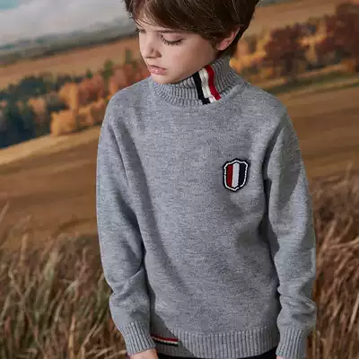 Boys sweater children's knitted bottoming shirt 2021 autumn and winter new cardigan medium and large children's clothing pullover round neck top