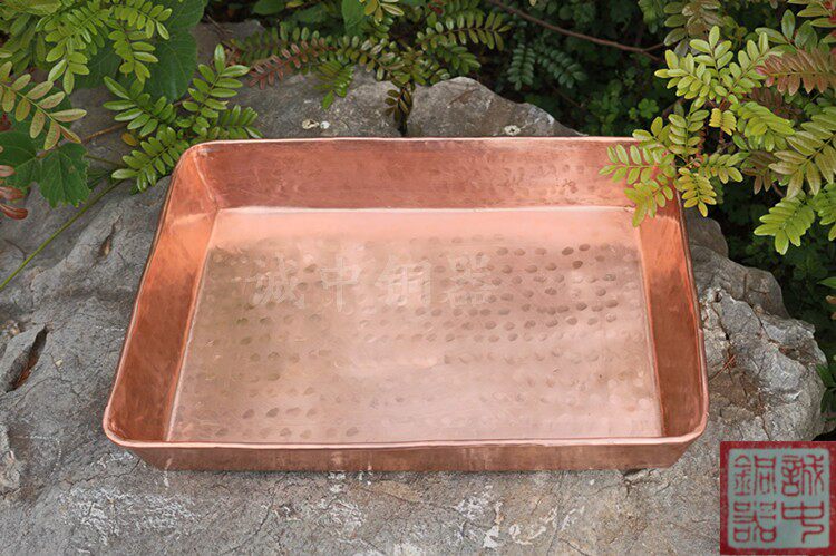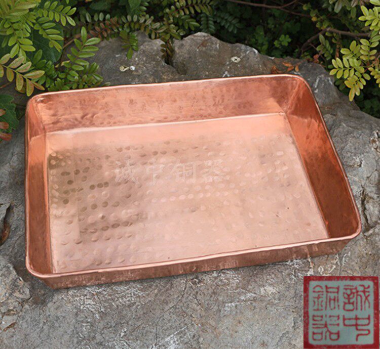 Pure handmade red copper deepens thicken rectangular fried artichokes Dishes Barbecue Dish tray Tray Dinner Plate Flat-bottomed Square Pan