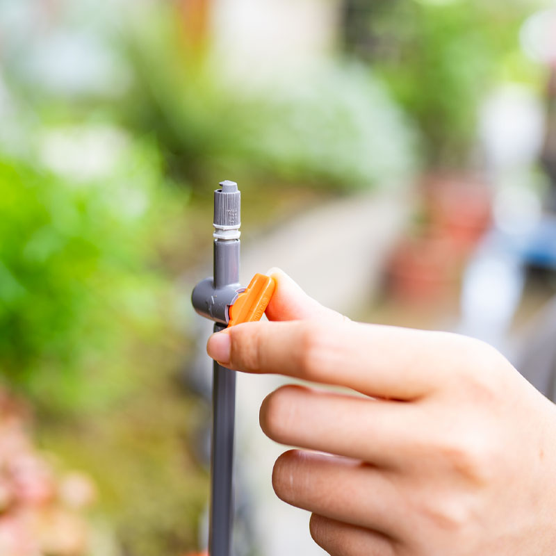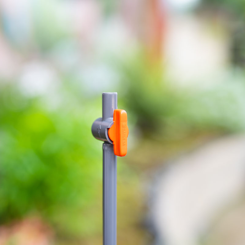 German GARDENA Cardiner with 1374 drop head control valve to adjust the flow rate and the spraying range