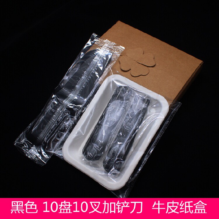 5 trays 5 forks black 10 trays 10 forks black black 10 trays 10 forks spatula kraft paper box black 10 trays 10 forks spatula OPP bag black 5 trays 5 fork spatula with white carton 3