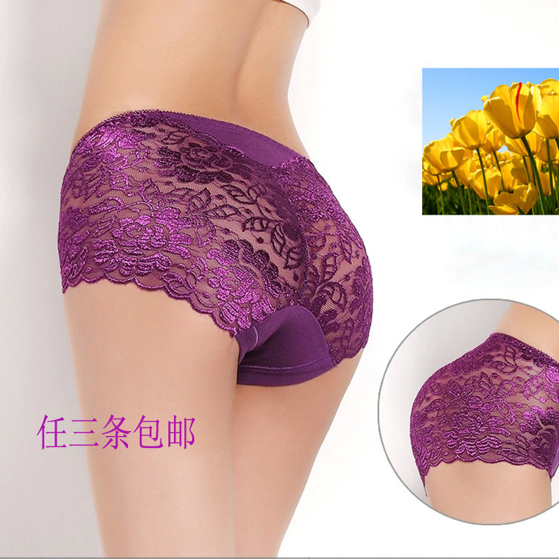 Summer Lace Briefs Women Style Mid Waist Transparency Sensation No Mark Students Cute Hollowed-out Bamboo Fiber Thin Triangle Pants Head