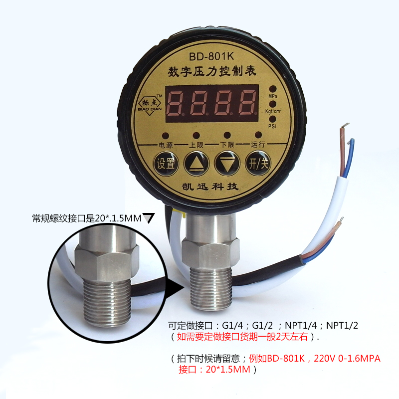 Digital pressure gauge Control gauge Pressure barometer punctuation digital display seismic resistance electric contact pump switch BD80 negative pressure
