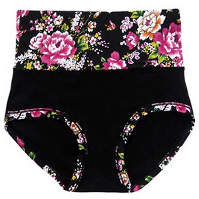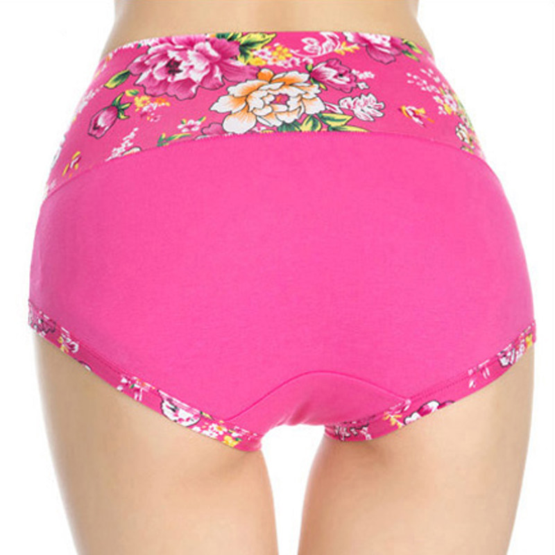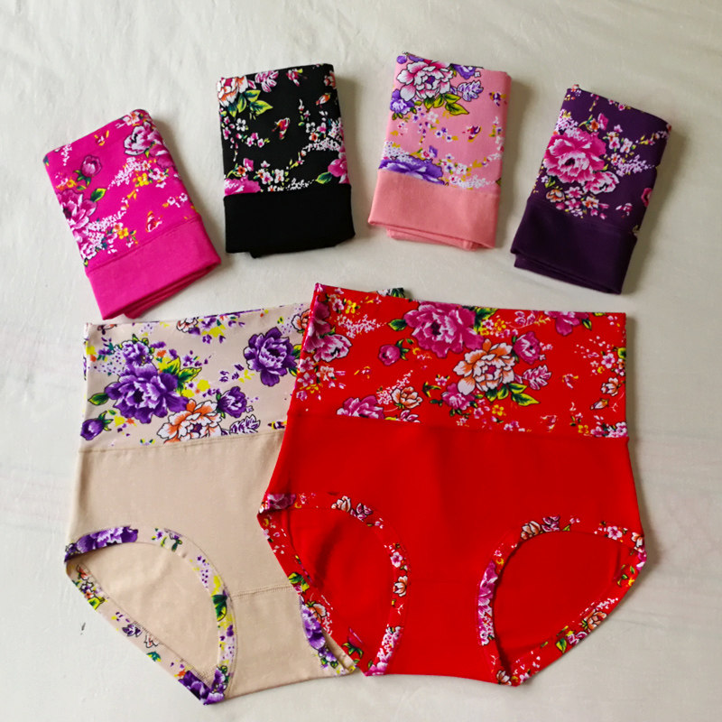 Panties women's cotton high-waisted pants breathable cotton printing belly hip sexy incognito large size triangle shorts slits