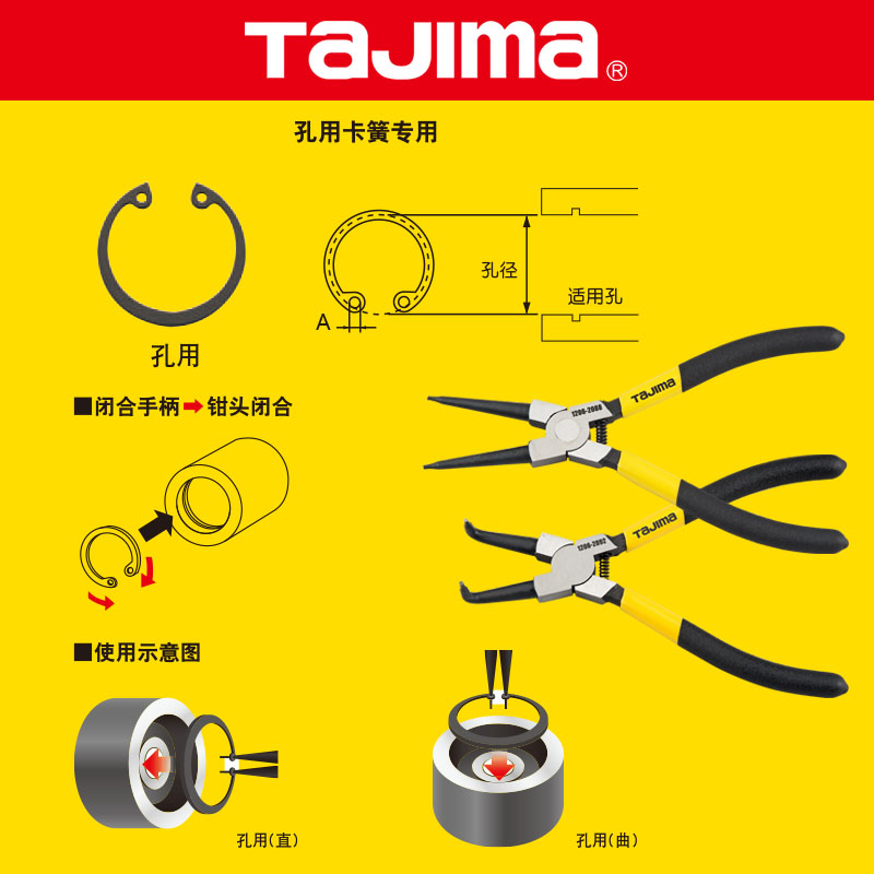 Tajima Tajima Tajima German-style spring circlip clamp shaft with hole with straight grasp curl grasp 5 inches 7 inches 9 inches 13 inches