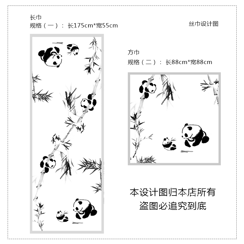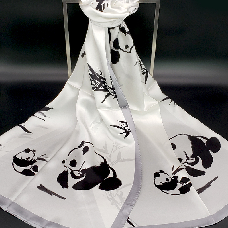 Water ink Panda Silk Scarf B Fang Towel (new) Water ink Panda Silk Scarves C Long Scarves (new)
