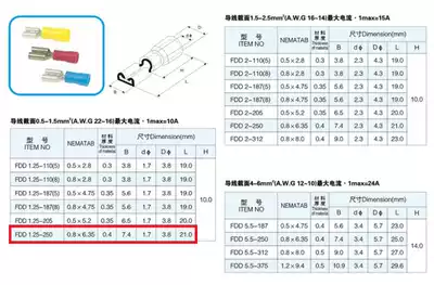 Brass FDD1 25-250 22-16 plug spring terminal cold press Terminal 6 3 plug Spring