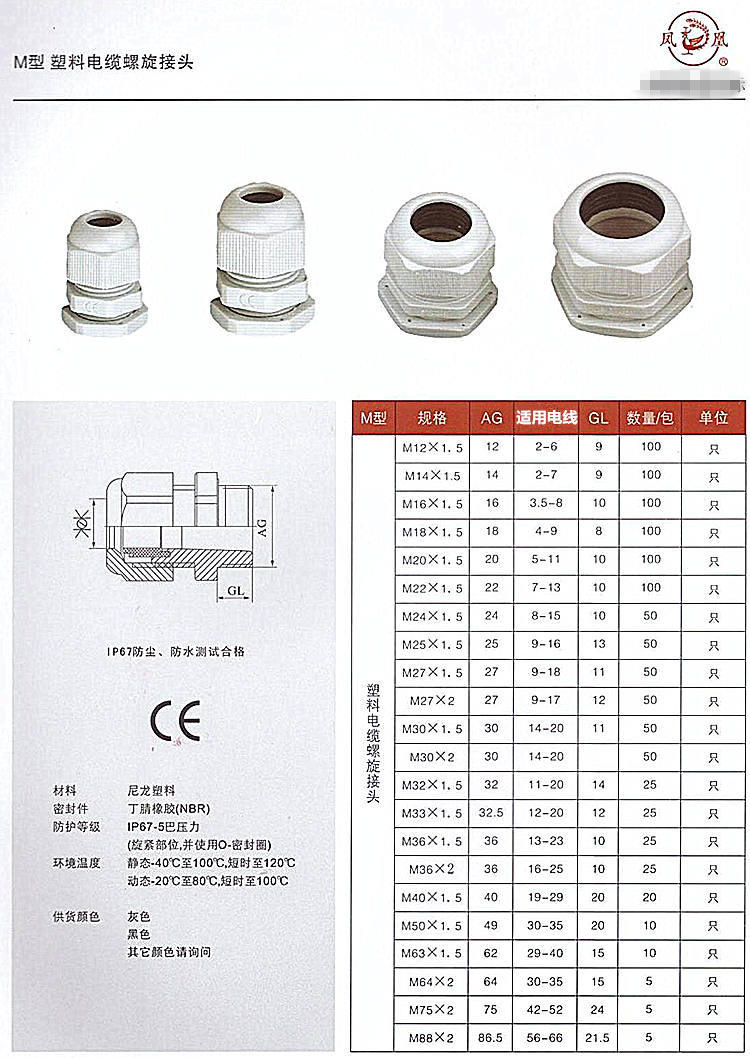 Phoenix M - series nylon plastic cable joint waterproof joint cable fixed head rotating joint