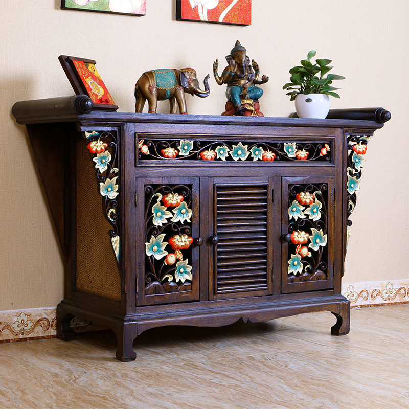 Southeast Asia home porch cabinet TV cabinet handmade wood carving shoe cabinet locker living room partition decoration cabinet