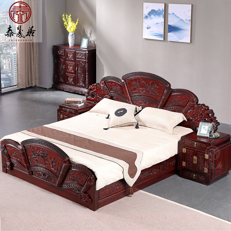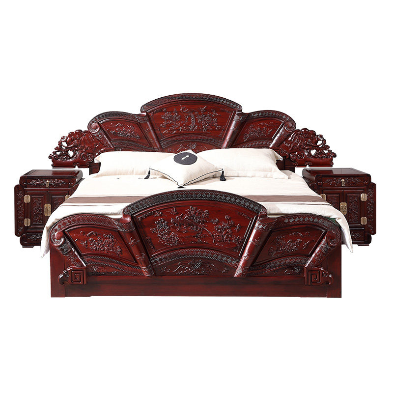 Mahogany bed double bed furniture antique Chinese style all solid wood bed carved master bedroom South American sour branch wood bed 18 meters