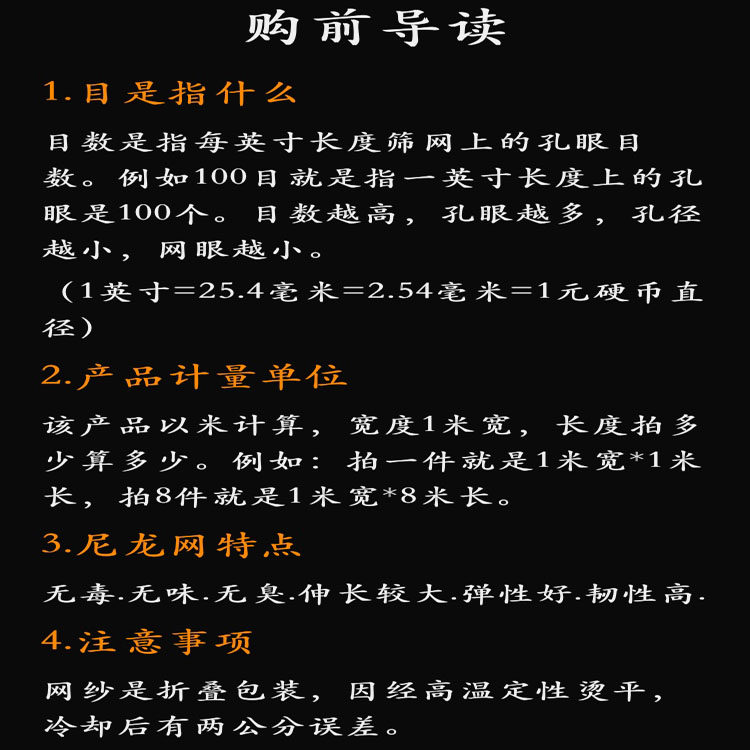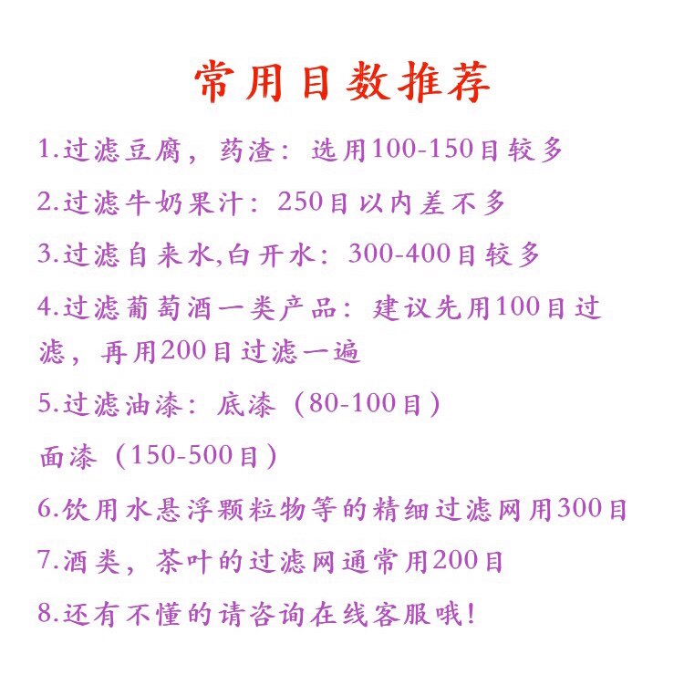 500 items * 1 m wide 450 mesh * 1 m wide 400 mesh * 1 m wide 350 mesh * 1 m wide 300 mesh * 1 m wide 250 mesh * 1 m wide 200 mesh * 1 m wide 180 mesh