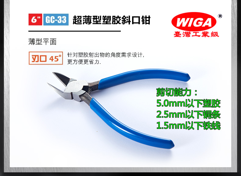 Taiwan power steel WIGA elbow oblique mouth pliers Curved mouth 45 degrees plastic special oblique mouth pliers Oblique mouth pliers Water mouth pliers