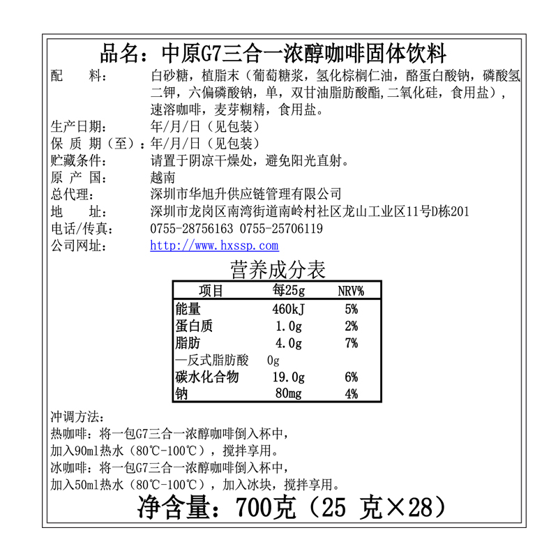 Vietnam Imports Central Plains G7 Dense Alcohol Coffee Three-in-one Instant Coffee 700g Original Taste 800g of 1500g-Taobao