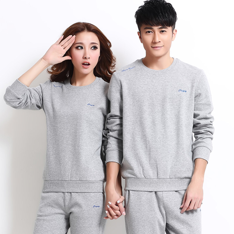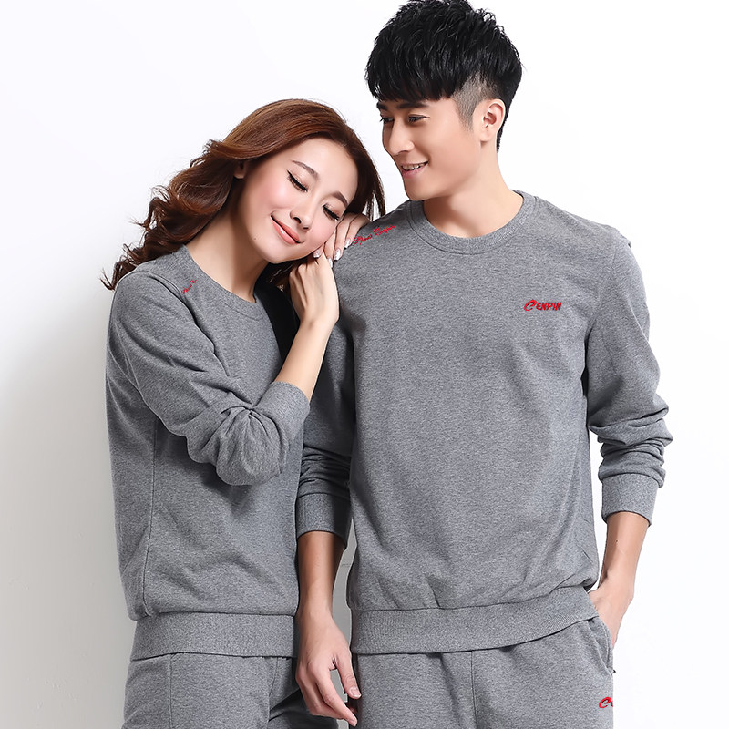 Spring and autumn lovers thick T-shirt round collar cotton casual sportswear suit men and women big size sports suit long sleeve sportswear suit