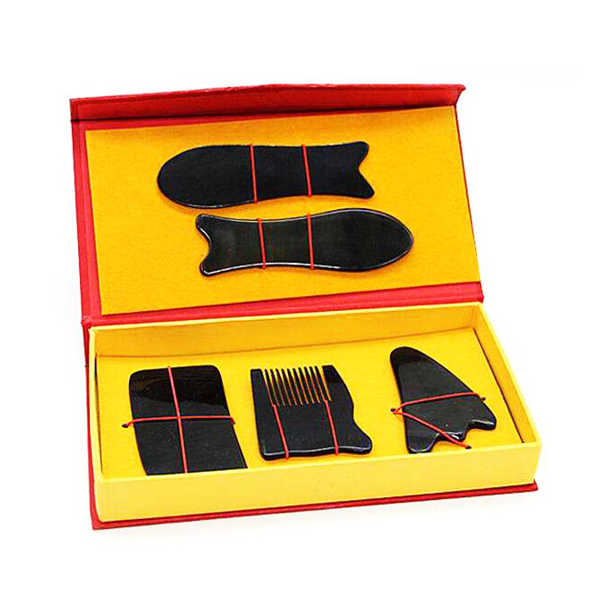 Natural black buffalo horn scraping board five-piece set) scraping board set horn) black set) black horn set
