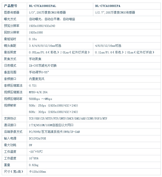 BL-C7CA1080IPEL Wave Grain one million HD Hemisphere Popgrain 2 million Internet surveillance lens external audio