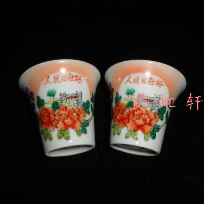 Jingdezhen Cultural Revolution Factory Porcelain Pastel Hand Painted People's Commune Good Pu'er Tea Cup Magnolia Cup Bao Lao
