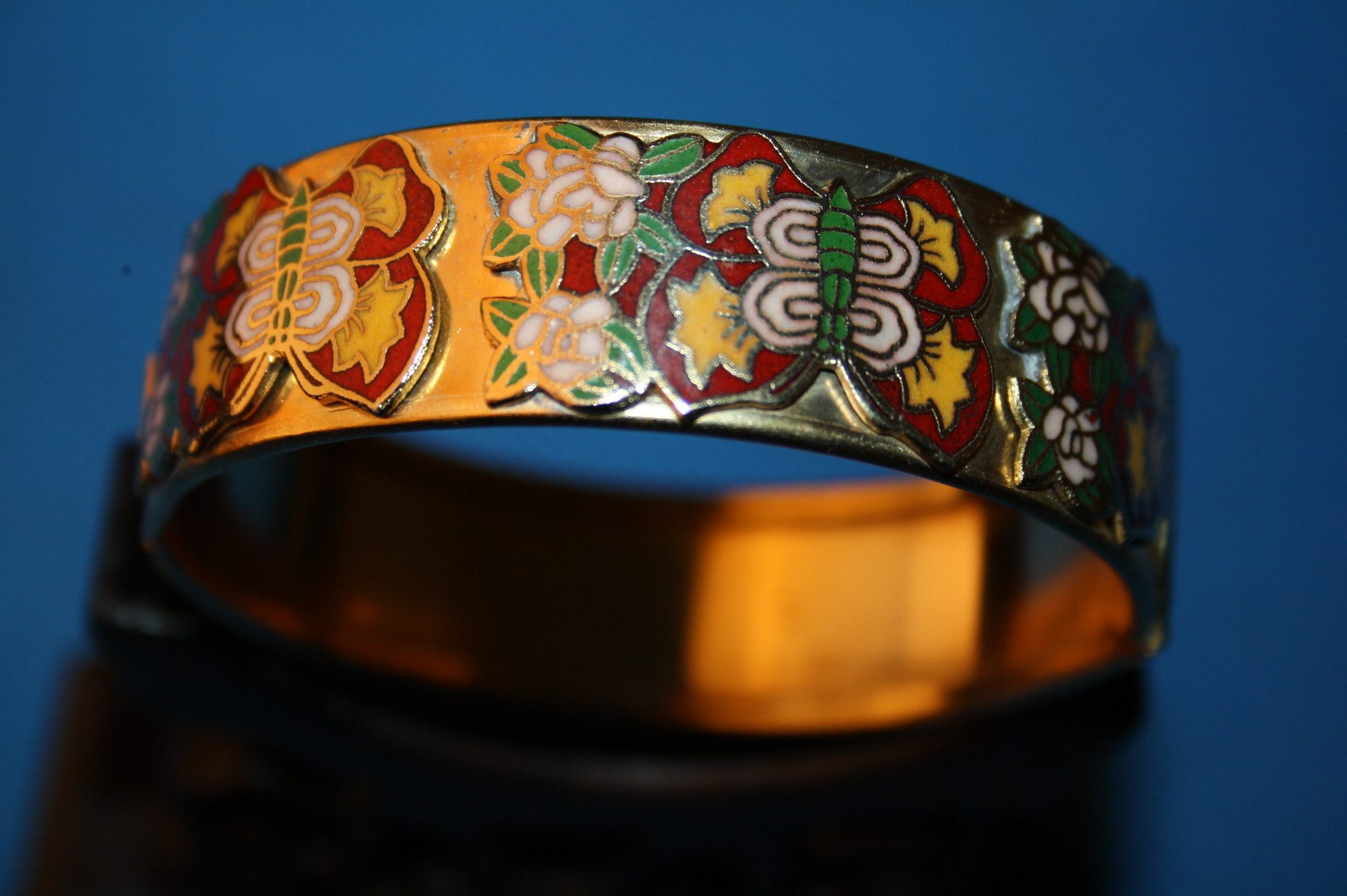 80s Foreign Trade Export Old View Thai Blue Wide Side Floral Butterfly Fashion Bracelet Old Jingtai Blue Floral Bracelet