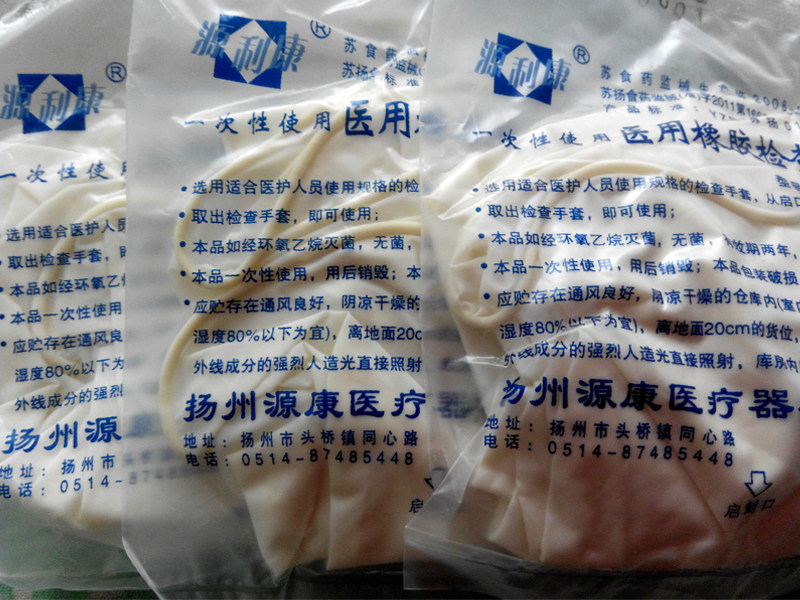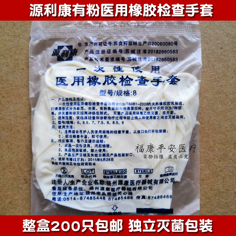 Yangzhou Yuanlikang disposable medical rubber inspection gloves with powder latex gloves each pair of independent packaging