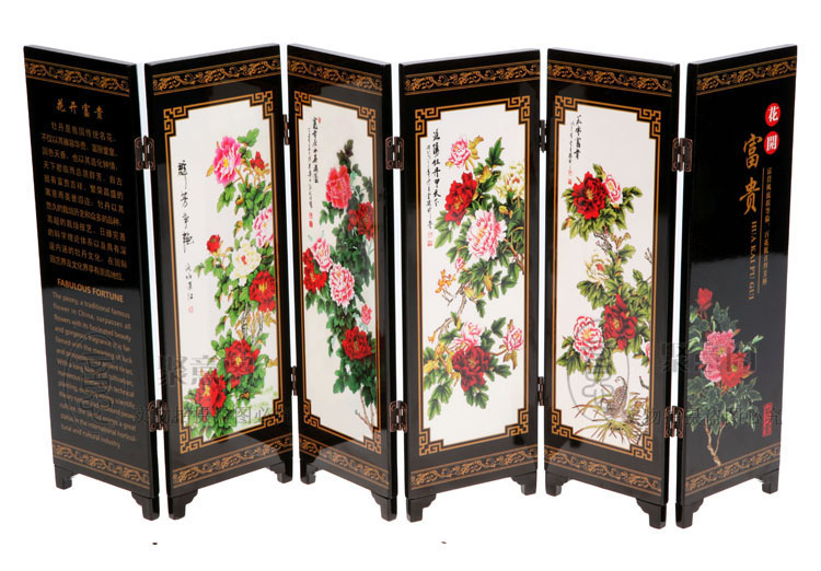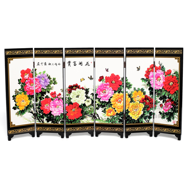 6 fan imitation ancient small screen flowers open rich and expensive business gift Lacquer Painting Pendulum handicraft hawks abroad to send old foreign gifts