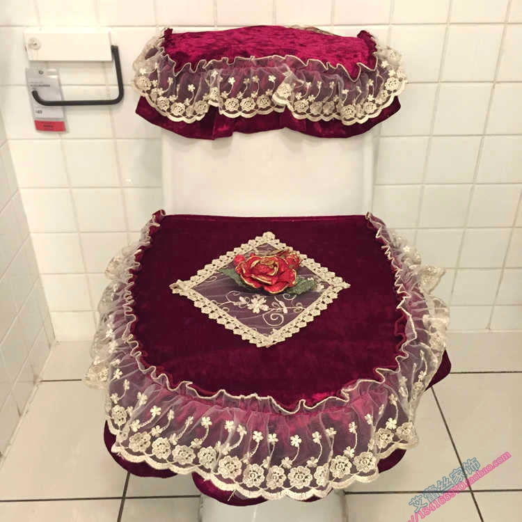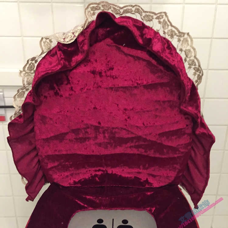 Upscale gold velvet toilet Three sets of toilet warm cushion toilet Circle field lace toilet cushion toilet cover