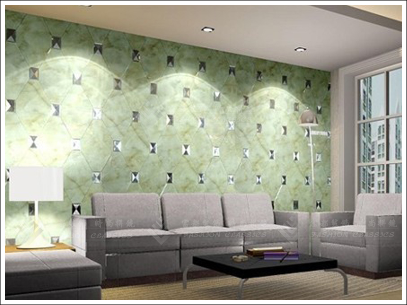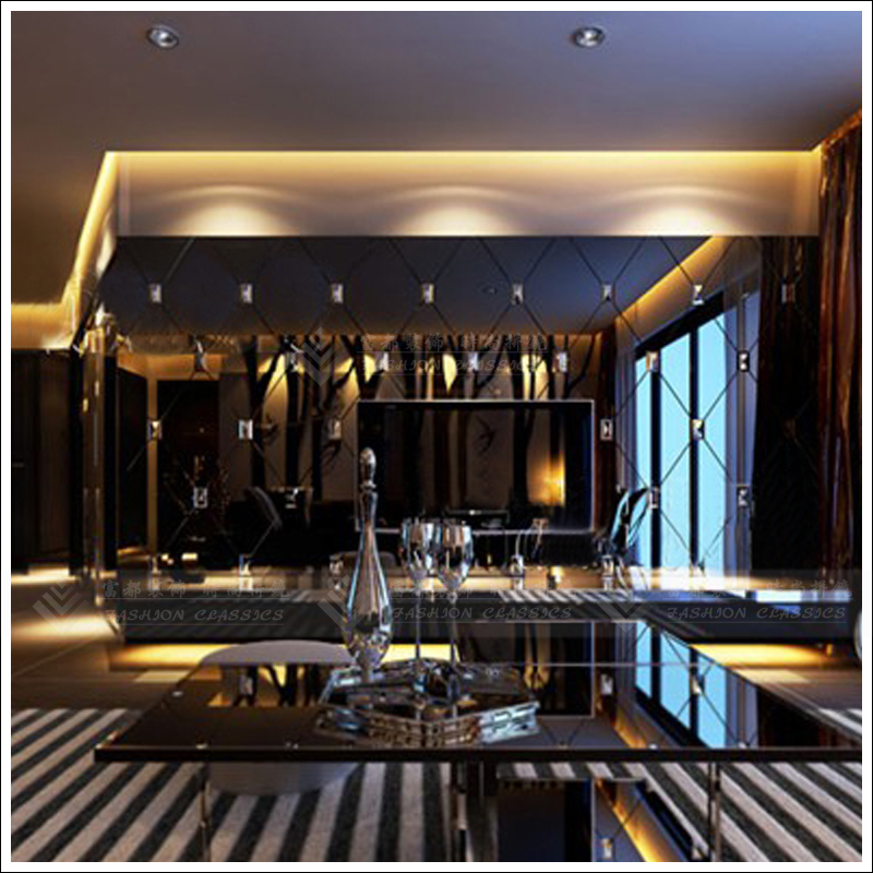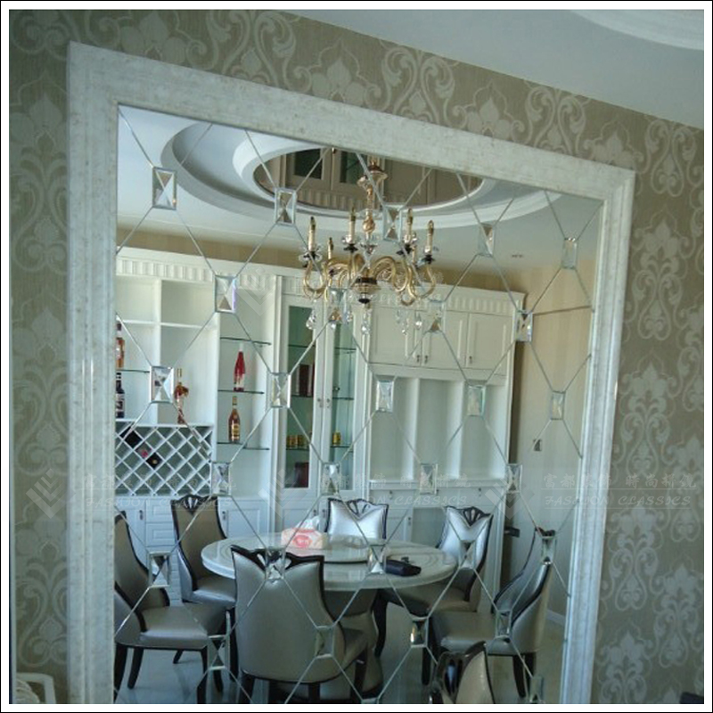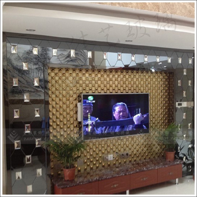 Custom art glass guest dining room sofa TV background wall diamond super white tea silver gray black pink purple mirror