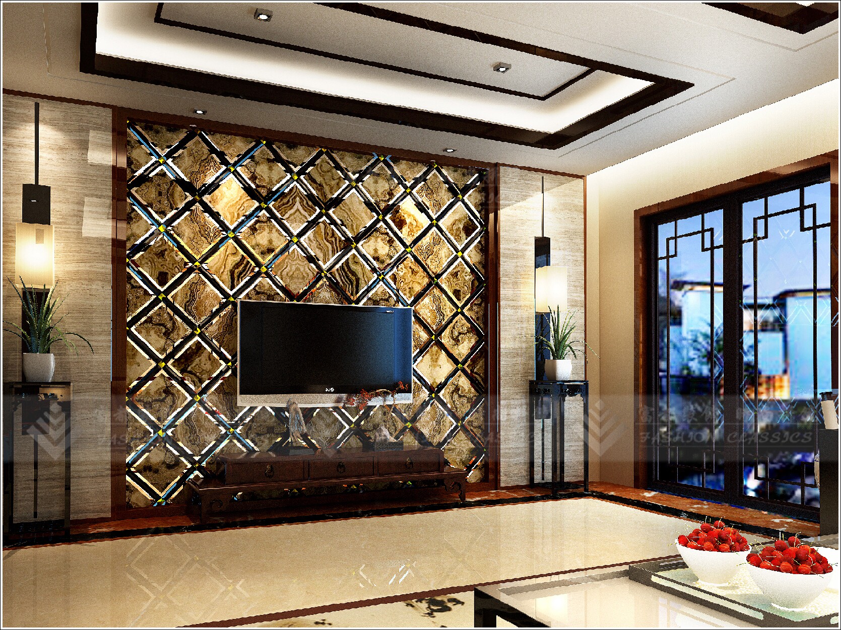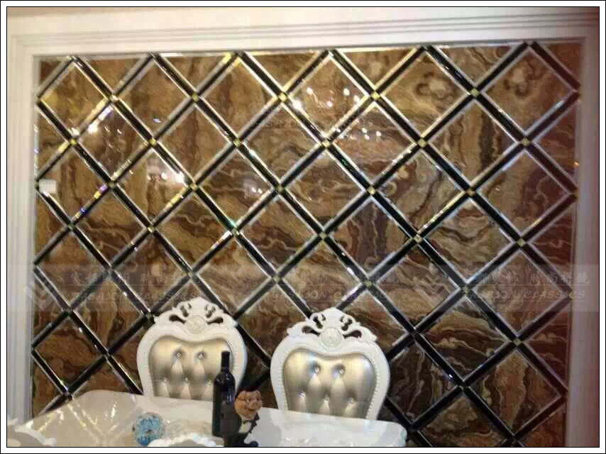 Art glass art spell mirror microcrystalline stone TV background wall marble texture marble pattern spell mirror rhombus