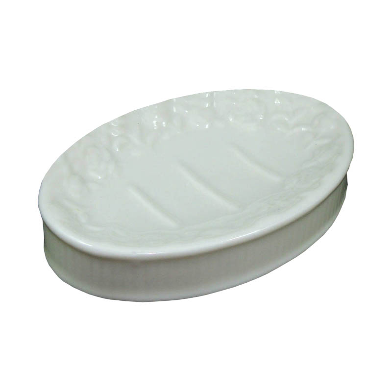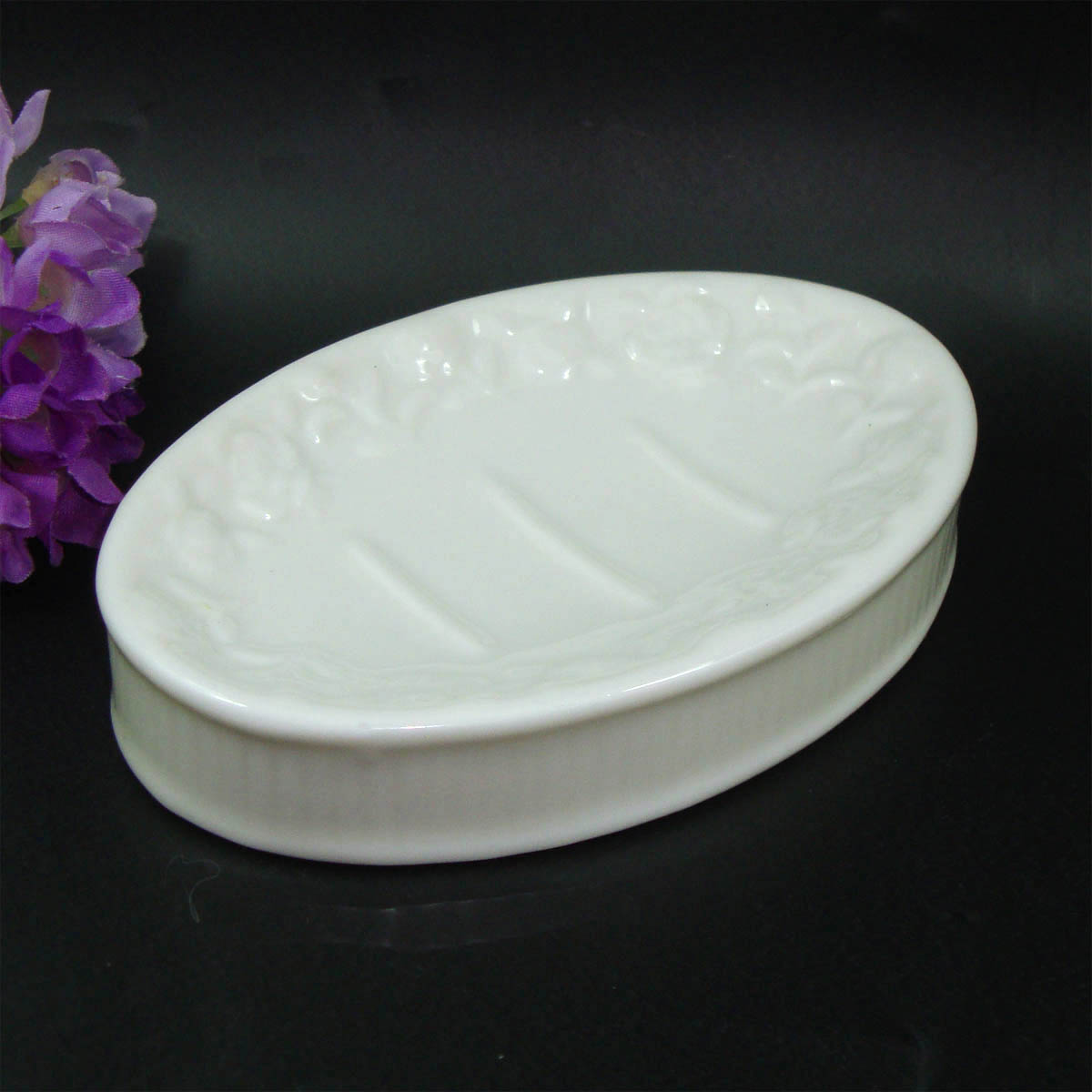 Ceramic Soap Dish Relief Side Flower Light Rice Yellow Soap Case Special Handmade Soap Rack Laundry Soap