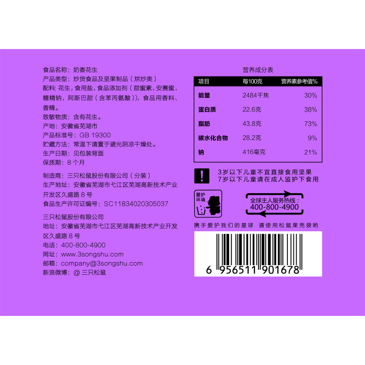 (Three squirrels _ milk fragrant peanuts 150gx2 bags) casual snack snacks nuts specialty fried peanut rice