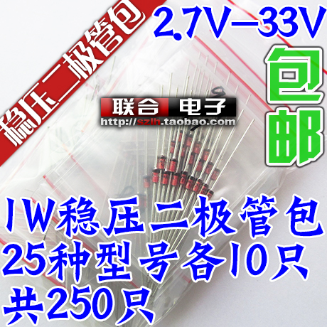 1W voltage regulator diode package electronic components package 1W 2 7V-33V in-line commonly used 25 kinds of a total of 250
