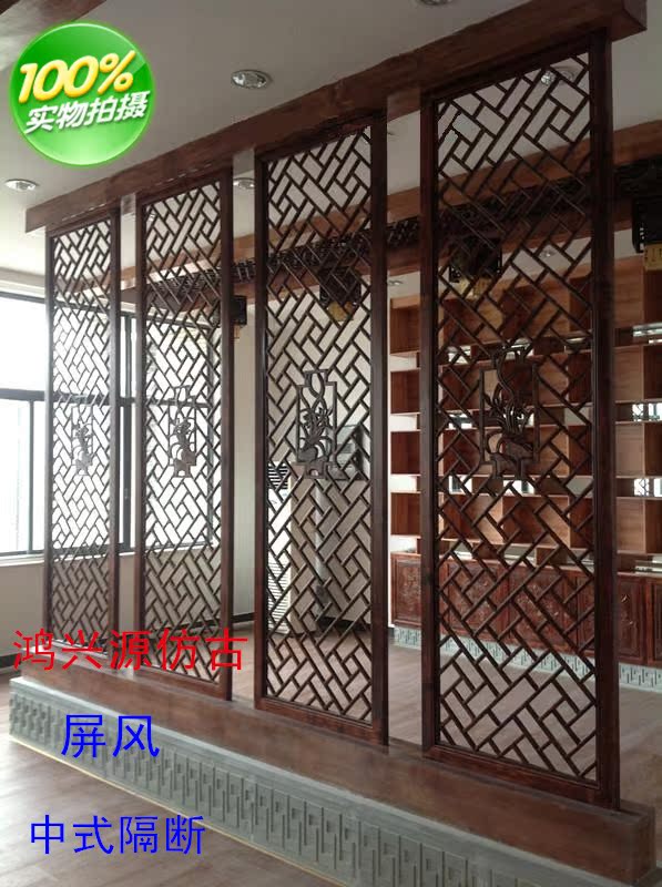Dongyang wood carving manufacturer Chinese style decoration flower lattice Xuanguan partition screen TV background wall imitation ancient doors and windows