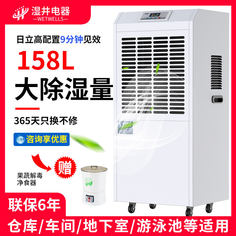 Wet well electrical industrial dehumidifier high power 156L dehumidifier warehouse workshop basement dehumidifier