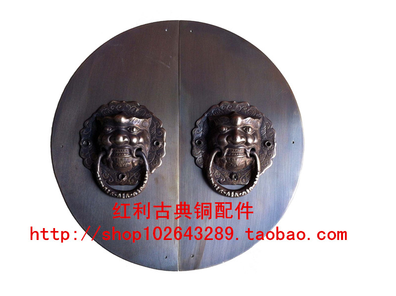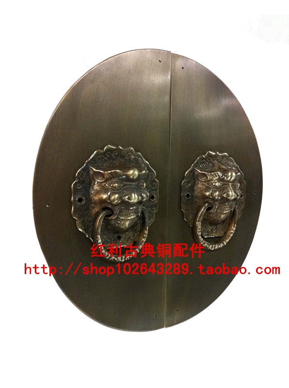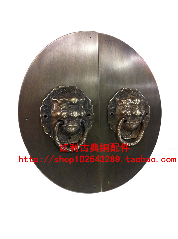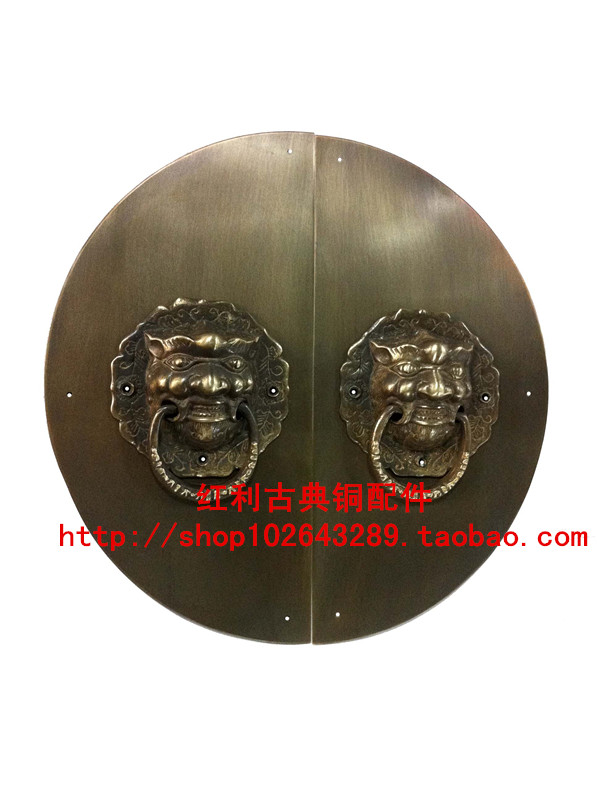Dividend classical copper accessories antique pure copper ancient building decoration cabinet door decoration round handle pull ring door 35cm