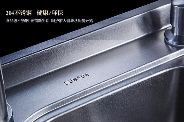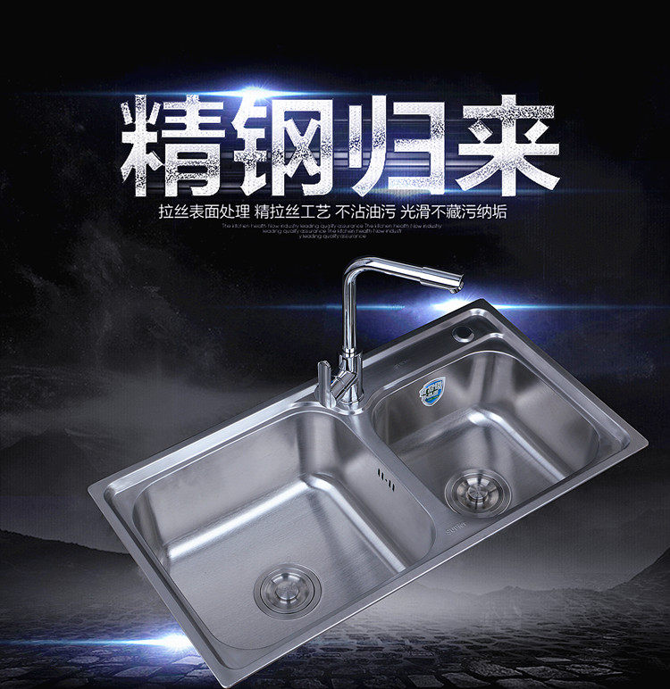 Sink washbasin kitchen double tank SUS304 stainless steel dishwashing pool with tap package integrated thickened water basin